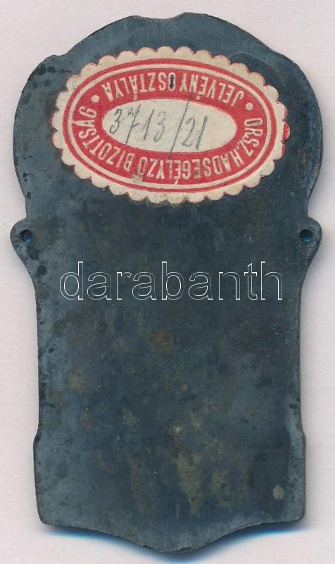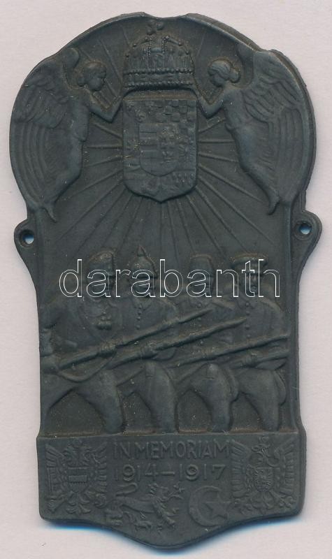 Osztrák-Magyar Monarchia 1917. "In memoriam 1914-1917" fém katonai felvarró, hátoldalán sérült "Országos Hadsegélyző Bizottság Jelvény Osztálya" bélyeggel (65x38mm) T:2 Austro-Hungarian Monarchy 1917. "In memoriam 1914-1917" metal military patch with damaged "Országos Hadsegélyző Bizottság Jelvény Osztálya" stamp on reverse (65x38mm) C:XF