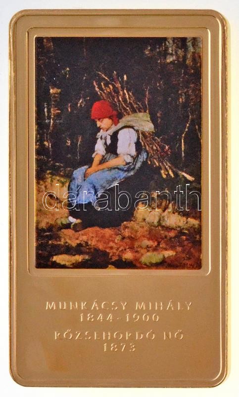 Leírás: 2014. "A magyar festészet remekművei / Munkácsy Mihály (1844-1900) / Rőzsehordó nő 1873" aranyozott, multicolor Cu emlékérem (35x60mm) T:PP