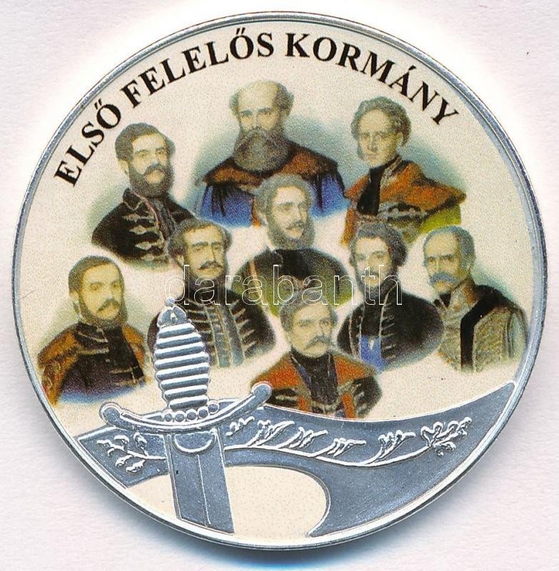 Leírás: DN "A szabadságharc képes krónikája - Első felelős kormány" ezüstözött, multicolor Cu-Zn emlékérem tanúsítvánnyal (38mm) T:PP