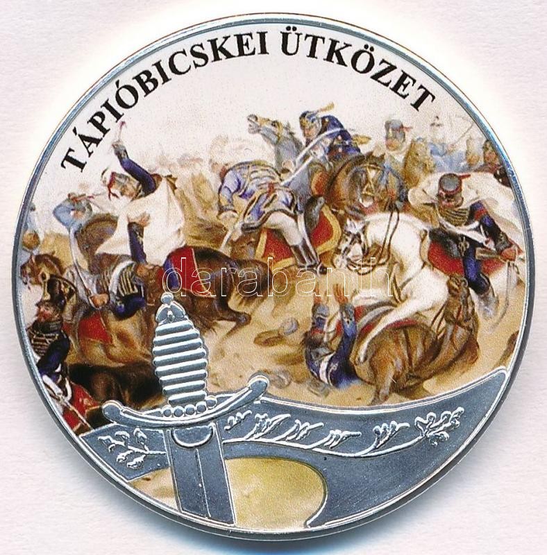 Leírás: DN "A szabadságharc képes krónikája - Tápióbicskei ütközet" ezüstözött, multicolor Cu-Zn emlékérem tanúsítvánnyal (38mm) T:PP