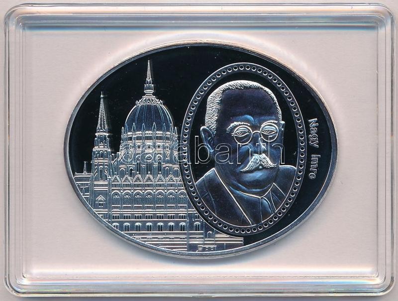 Leírás: DN "Hazám, hazám, te mindenem / Legendás épületek - Nagy Imre / Országház" ezüstözött Cu emlékérem tanúsítvánnyal (46x36mm) T:PP