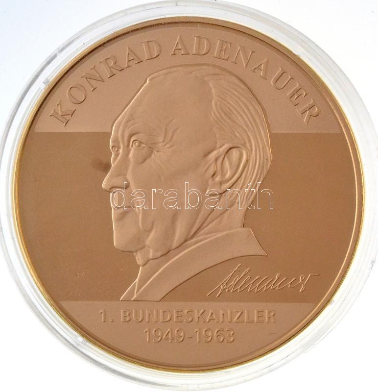 Németország DN "A Német Szövetségi Köztársaság kancellárjai és elnökei - Konrad Adenauer" aranyozott Cu-Ni emlékérem, német nyelvű tanúsítvánnyal T:PP Germany ND "Die Kanzler und Präsidenten der Bundesrepublik Deutschland - Konrad Adenauer" gilt Cu-Ni commemorative medallion with german language certificate C:PP