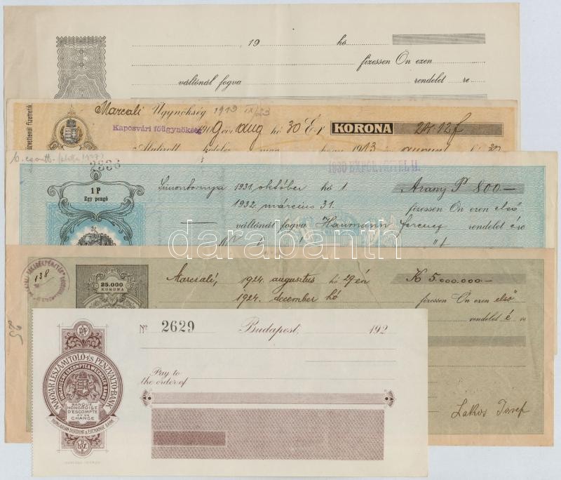 1913-1931. 5db klf váltó, közte 2db kitöltetlen, a kitöltöttek között ... https://www.darabanth.com/hu/323-Gyorsarveres/323.0/Numizmatika/Papir-es-fem-szuksegpenzek~2000005/1913-1931-5db-klf-valto-kozte-2db-kitoltetlen-a-kitoltottek-kozott-Elso-Magyar-Altala~II1796474