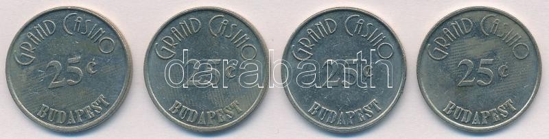 Leírás: DN 25c "Grand Casino Budapest" fém zseton (4x) T:2