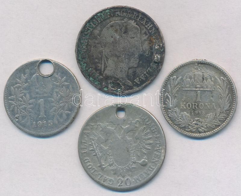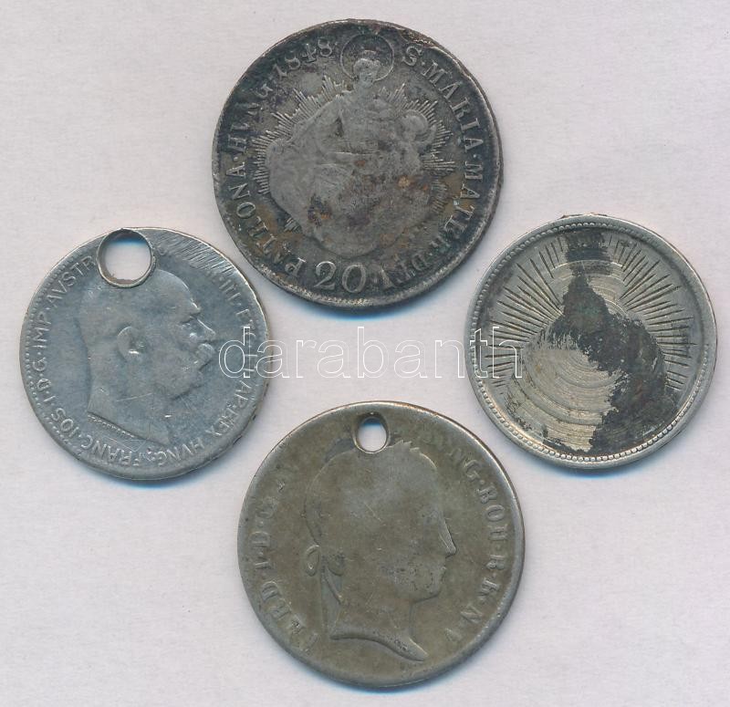 Leírás: 4db-os vegyes magyar és külföldi rossz tartású, sérült ezüstpénz tétel T:2-,3 ly.