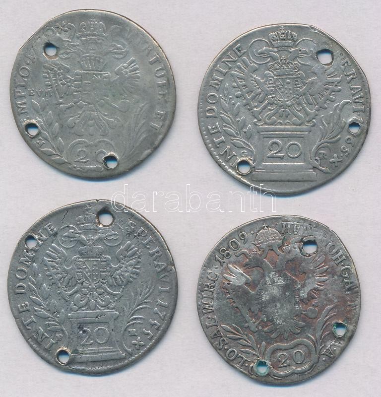 4pcs of various silver coins in bad condition, all are 20 Kreuzer C:VF,F hole