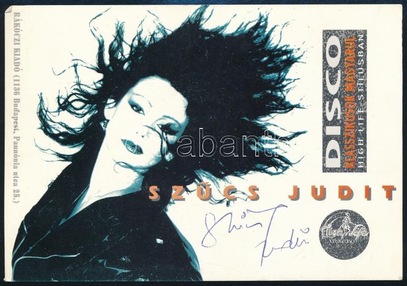 Leírás: Szűcs Judit (1953- ) énekesnő aláírása egy őt ábrázoló nyomtatványon
