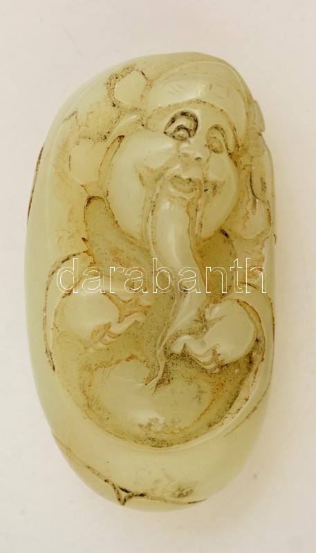 Leírás: Buddha, kínai jade faragvány, kis kopásokkal, 6×3,5×2,5 cm