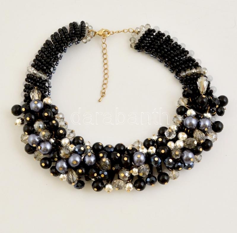 Leírás: Gyöngyökkel sűrűn díszített bizsu nyakék