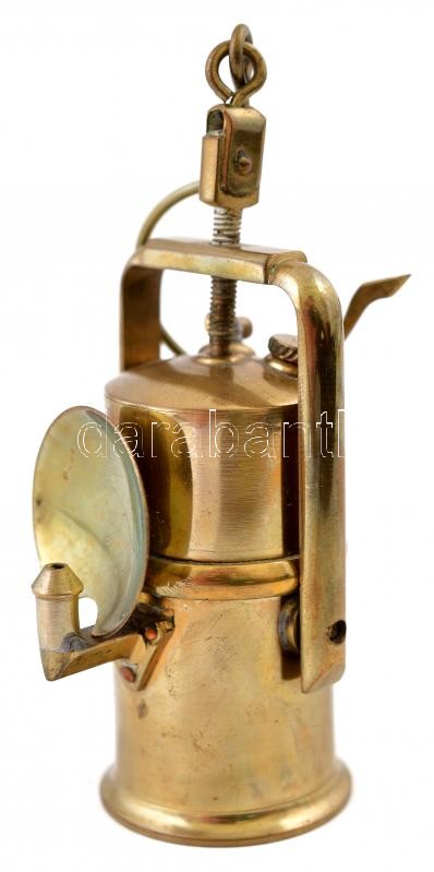 Leírás: Kisméretű réz bányászlámpa, m: 15 cm