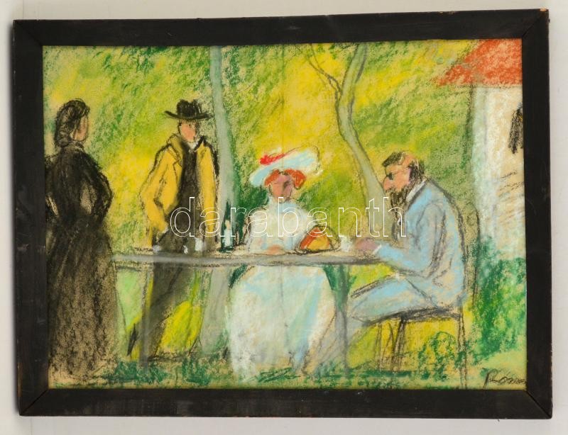 Leírás: Rónai jelzéssel: Asztalnál. Pasztell, papír, üvegezett keretben, 29×40 cm