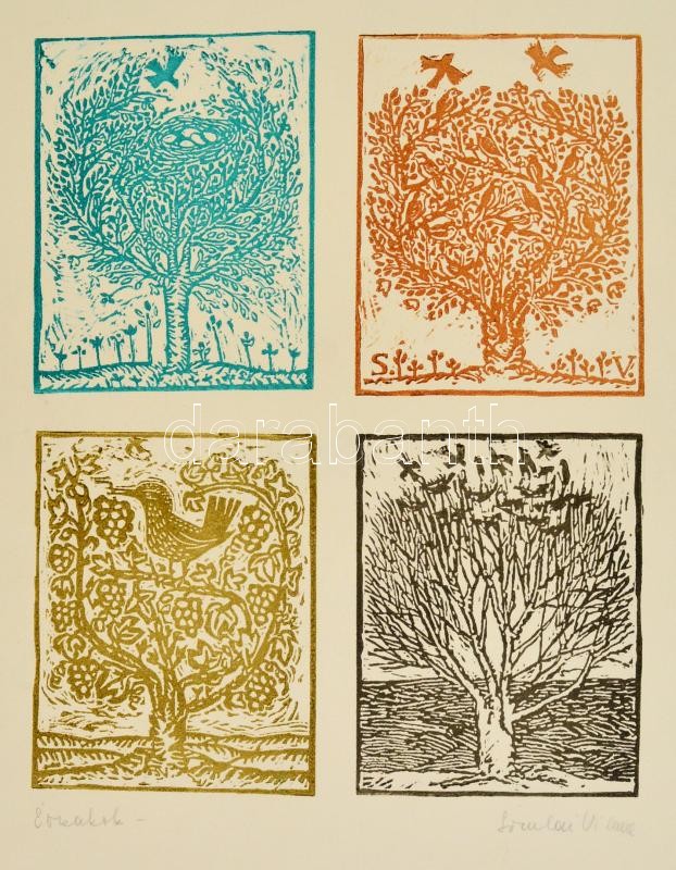 Somlai Vilma (1938-2007): Évszakok, színes linó, papír, jelzett, 23×1... https://www.darabanth.com/hu/324-Gyorsarveres/324.0/Festmeny-mutargy-papirregiseg-egyeb/Festmenyek-es-grafikak~2/Somlai-Vilma-1938-2007-Evszakok-szines-lino-papir-jelzett-23C39718-cm~II1800233