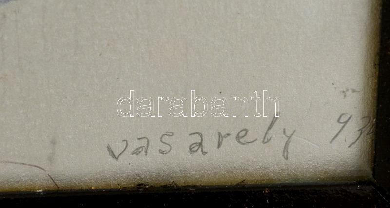 Leírás: Vasarely jelzéssel: Kompozíció. Vegyes technika, papír, üvegezett keretben, 33×33 cm