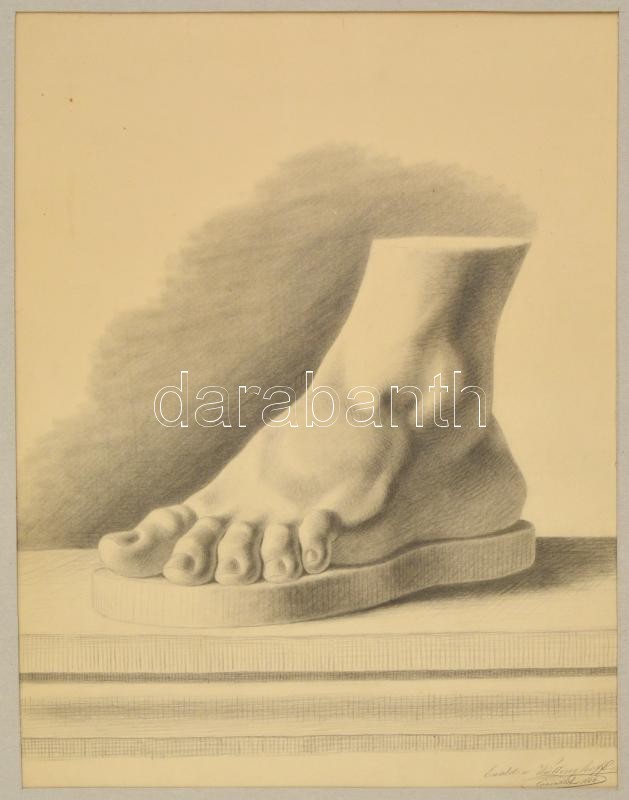 Leírás: Wiettinghoff Evald (1826-1882): Lábfej tanulmány. Grafit, papír, jelzett, paszpartuban, 45×35 cm