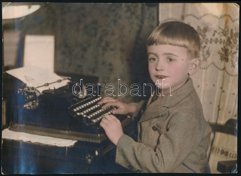 Kisfiú írógéppel, színezett fotó, 16×22 cm https://www.darabanth.com/hu/324-Gyorsarveres/324.0/Festmeny-mutargy-papirregiseg-egyeb/Foto~21/Kisfiu-irogeppel-szinezett-foto-16C39722-cm~II1801531