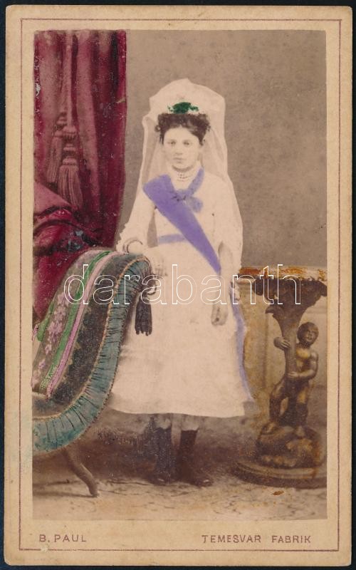cca 1880 Fiatal lány portréja, utólag színezett keményhátú fotó B. Pau... https://www.darabanth.com/hu/324-Gyorsarveres/324.0/Festmeny-mutargy-papirregiseg-egyeb/Foto~21/cca-1880-Fiatal-lany-portreja-utolag-szinezett-kemenyhatu-foto-B-Paul-temesvari-muterme~II1797838