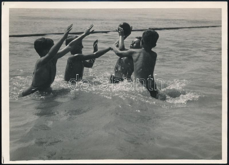 Leírás: cca 1935 Kinszki Imre (1901-1945) budapesti fotóművész pecséttel jelzett, vintage fotóművészeti alkotása (Játék a vízben), 13x18 cm