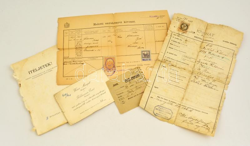 cca 1930-1940 Vegyes judaika nyomtatvány tétel, közte születési anyakönyvi kivonat, halotti anyakönyvi kivonat, Itéljetek! című kiadvány, összesen 5 db