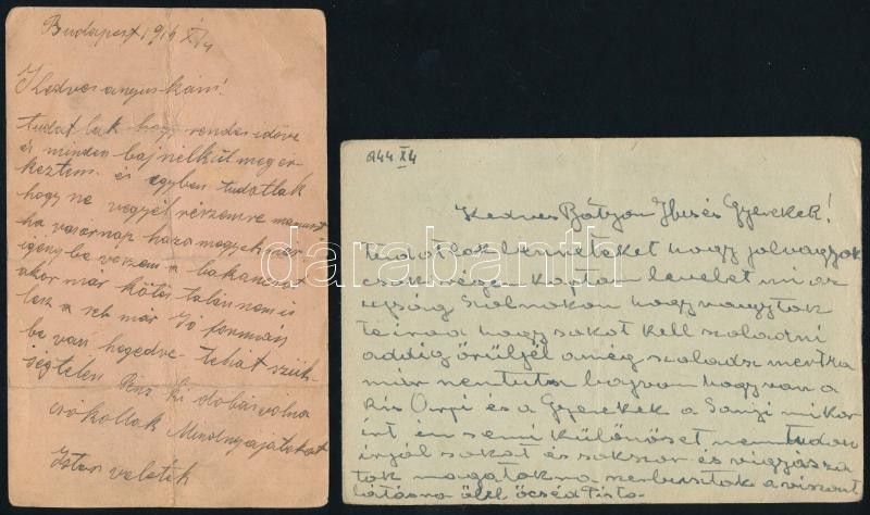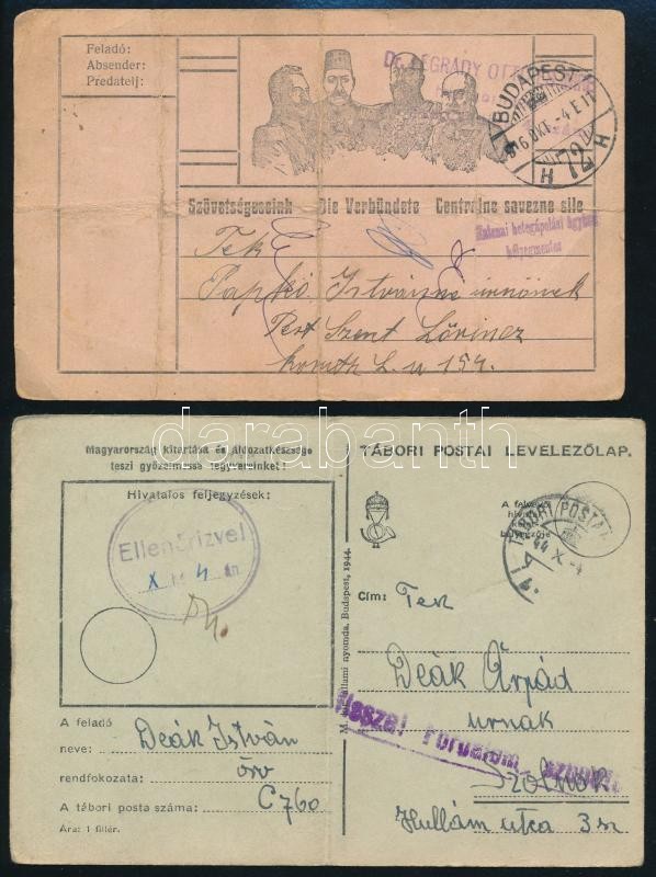 1916, 1944 Tábori postai levelezőlapok, 2 db
