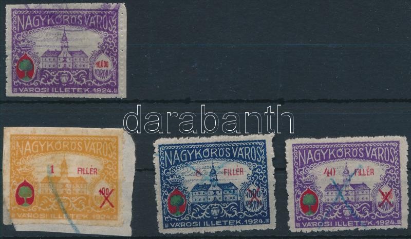 Leírás: 4 db Nagykőrös városi okmánybélyeg (9.500)