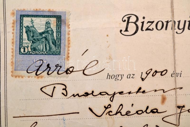 1919-1940 4 db régi bizonyítvány: 1919 Bp.,villanyszerelő bizonyítvány, 1930 Bp., Budapesti Villamfelszerelő, Műszerész és Látszerész Ipartestület műszerész segédlevele, 1937 Szombathelyi Ipartestület női szabó tanonc segédlevél, 1940 Bp., iparostanonciskolai férfiszabó tanonc bizonyítvány. 1 k., 2 f., 50 f. okmánybélyegekkel, kettő hátoldalán javítással.