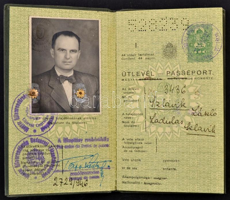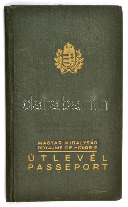 1946 Keményfedeles útlevél / Hungarian passport. https://www.darabanth.com/hu/324-Gyorsarveres/324.0/Festmeny-mutargy-papirregiseg-egyeb/Okmanyok~18/1946-Kemenyfedeles-utlevel-Hungarian-passport~II1790825