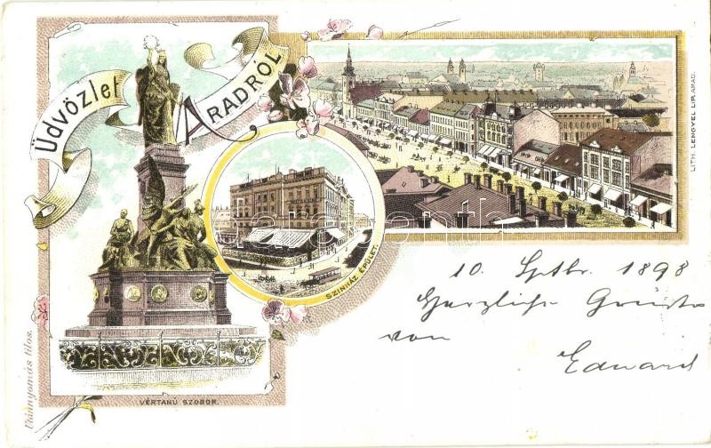 1898 Arad, Vértanú szobor, színház, Lengyel Lip. kiadása / martyrs sta... https://www.darabanth.com/hu/324-Gyorsarveres/324.0/Kepeslapok/Erdely~2000007/1898-Arad-Vertanu-szobor-szinhaz-Lengyel-Lip-kiadasa-martyrs-statue-theatre-Art-Nouveau~II1802830