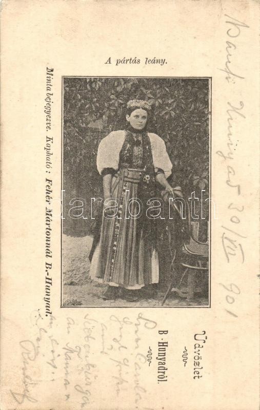 1901 Bánffyhunyad, Huedin; A pártás leány. Erdélyi népviselet, folklór... https://www.darabanth.com/hu/324-Gyorsarveres/324.0/Kepeslapok/Erdely~2000007/1901-Banffyhunyad-Huedin-A-partas-leany-Erdelyi-nepviselet-folklor-Kaphato-Feher-Mart~II1801411