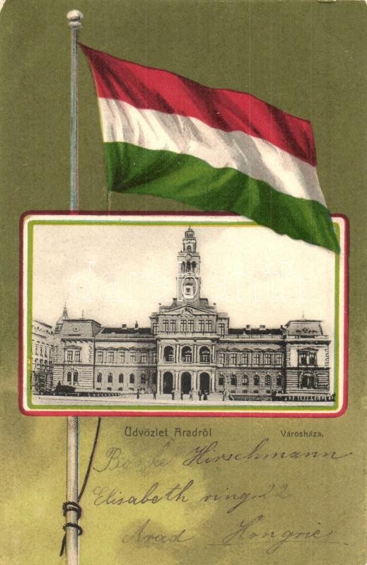 1903 Arad, Városháza. Magyar zászlós litho keret / town hall, Hungaria... https://www.darabanth.com/hu/324-Gyorsarveres/324.0/Kepeslapok/Erdely~2000007/1903-Arad-Varoshaza-Magyar-zaszlos-litho-keret-town-hall-Hungarian-flag-litho-frame-kopott~II1802112