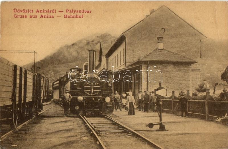 Anina, Stájerlakanina, Steierdorf; vasútállomás gőzmozdonnyal. W.L. 11... https://www.darabanth.com/hu/324-Gyorsarveres/324.0/Kepeslapok/Erdely~2000007/Anina-Stajerlakanina-Steierdorf-vasutallomas-gozmozdonnyal-WL-1191-Kaden-Jozsef-kiadas~II1802209