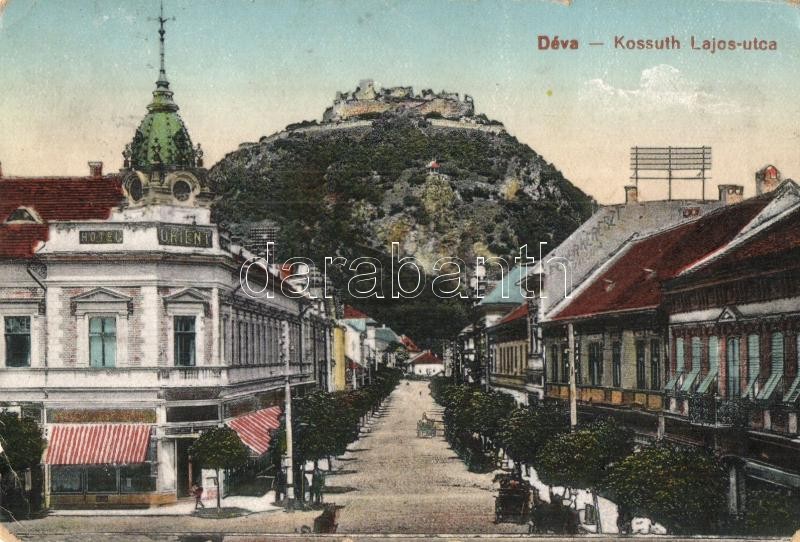 Déva, Kossuth Lajos utca, Orient és Fehér Kereszt szálloda, vár a hátt... https://www.darabanth.com/hu/324-Gyorsarveres/324.0/Kepeslapok/Erdely~2000007/Deva-Kossuth-Lajos-utca-Orient-es-Feher-Kereszt-szalloda-var-a-hatterben-street-hotels-~II1800646
