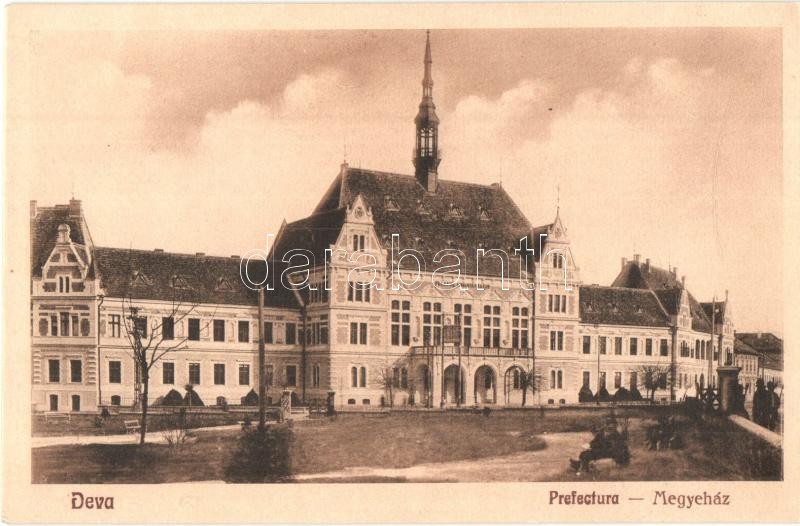 Déva, megyeház / Prefectura / county hall https://www.darabanth.com/hu/324-Gyorsarveres/324.0/Kepeslapok/Erdely~2000007/Deva-megyehaz-Prefectura-county-hall~II1802402