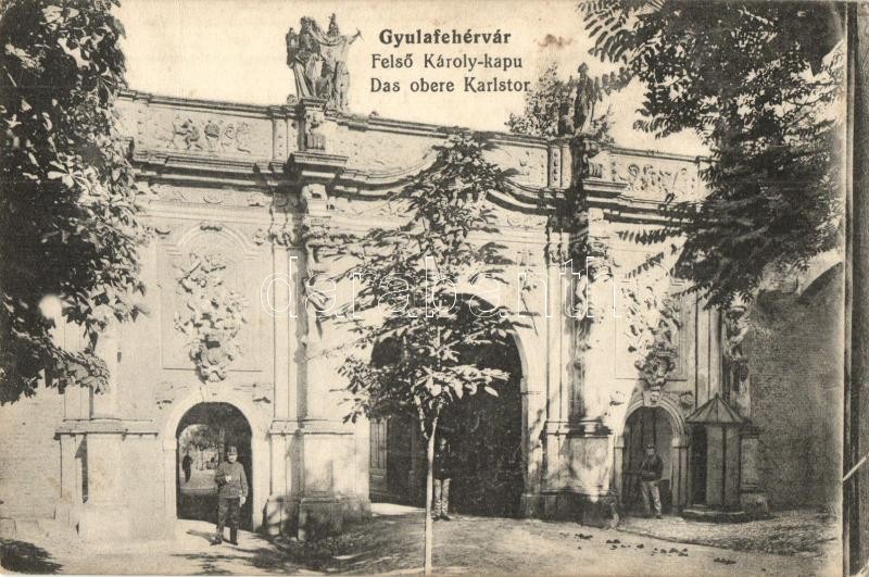 Gyulafehérvár, Alba Iulia; Felső Károly kapu katonákkal. Schäser Feren... https://www.darabanth.com/hu/324-Gyorsarveres/324.0/Kepeslapok/Erdely~2000007/Gyulafehervar-Alba-Iulia-Felso-Karoly-kapu-katonakkal-Schaser-Ferenc-kiadasa-Das-obere-K~II1804573