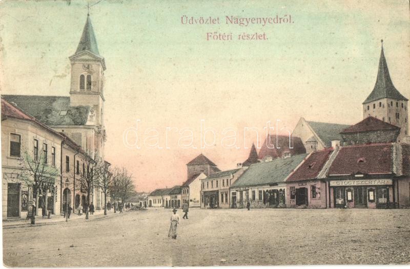 Nagyenyed, Aiud; Fő tér, templom, gyógyszertár, Baruch Bencze és társa... https://www.darabanth.com/hu/324-Gyorsarveres/324.0/Kepeslapok/Erdely~2000007/Nagyenyed-Aiud-Fo-ter-templom-gyogyszertar-Baruch-Bencze-es-tarsa-uzlete-Eredeti-Singer~II1800550
