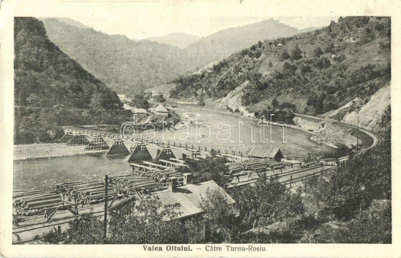 Leírás: Vöröstoronyi-szoros, Roterturmpass, Pasul Turnu Rosu (Olt-völgy/Valea Oltului); Fűrésztelepi híddal / sawmill with bridge (EK)