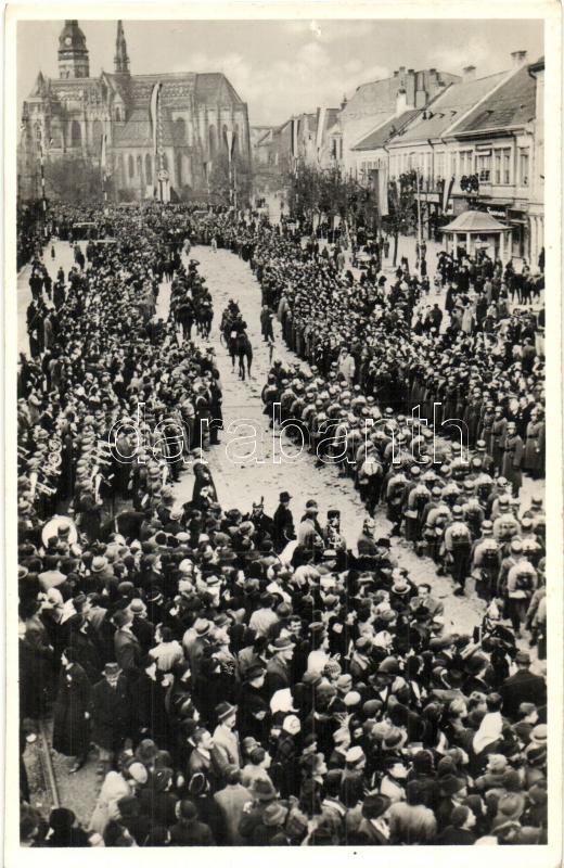 1938 Kassa, Kosice; bevonulás / entry of the Hungarian troops https://www.darabanth.com/hu/324-Gyorsarveres/324.0/Kepeslapok/Felvidek~2000008/1938-Kassa-Kosice-bevonulas-entry-of-the-Hungarian-troops~II1801862