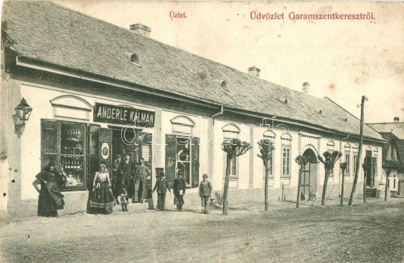 Garamszentkereszt, Sväty Kríz nad Hronom, Ziar nad Hronom; Anderle Kálmán üzlete és kirakata. Anderle Kálmán saját kiadása / publisher's shop front (fl)