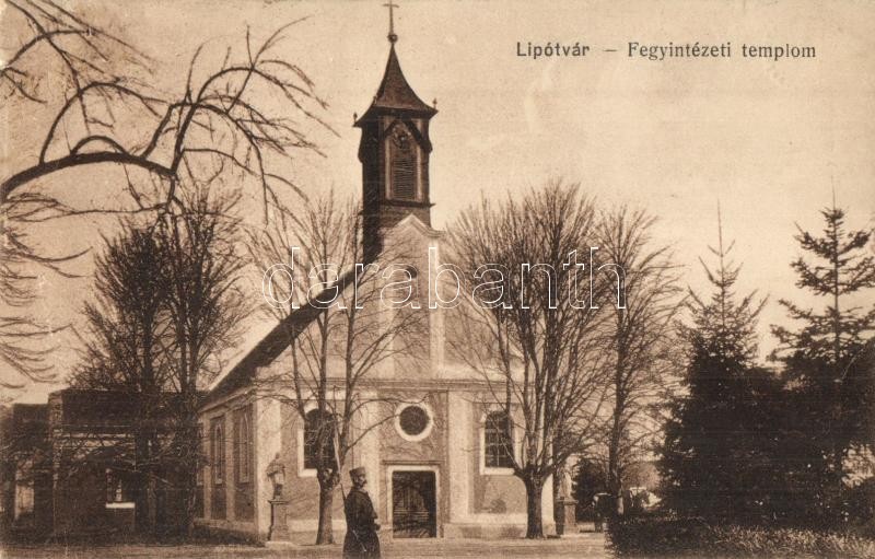 Lipótvár, Újvároska, Leopoldov; Fegyintézeti templom / prison church + M. kir. 4. honvéd tábori tarackos osztály 2. lövőszeres oszlop (kis szakadás / small tear)