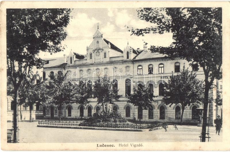 Losonc, Lucenec; Hotel Vigadó szálloda. Lichtig 1142. / hotel (EK) https://www.darabanth.com/hu/324-Gyorsarveres/324.0/Kepeslapok/Felvidek~2000008/Losonc-Lucenec-Hotel-Vigado-szalloda-Lichtig-1142-hotel-EK~II1800818