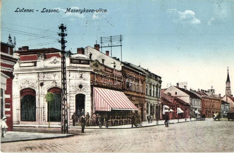 Losonc, Lucenec; Masaryk utca, Szusz Miksa üzlete / street view with s... https://www.darabanth.com/hu/324-Gyorsarveres/324.0/Kepeslapok/Felvidek~2000008/Losonc-Lucenec-Masaryk-utca-Szusz-Miksa-uzlete-street-view-with-shop-1938-Losonc-visszatert~II1801816