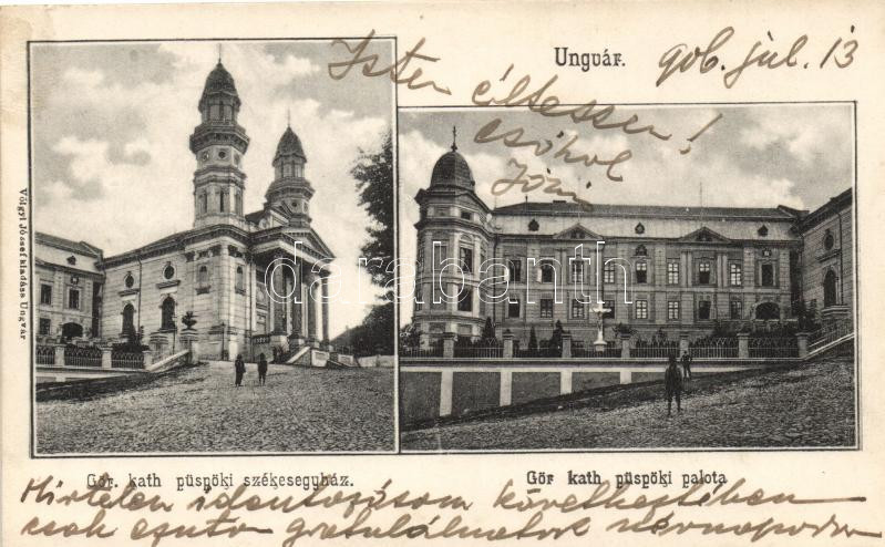 Leírás: Ungvár, Görög katolikus püspöki szégyesegyház és püspöki palota, Völgyi József kiadása / Greek Catholic cathedral and bishop's palace
