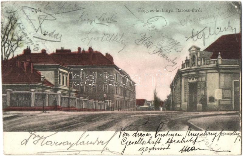 1906 Győr, Frigyes laktanya a Baross-útról. Kiadja Milanes Iván (EK) https://www.darabanth.com/hu/324-Gyorsarveres/324.0/Kepeslapok/Magyarorszag~2000006/1906-Gyor-Frigyes-laktanya-a-Baross-utrol-Kiadja-Milanes-Ivan-EK~II1803942