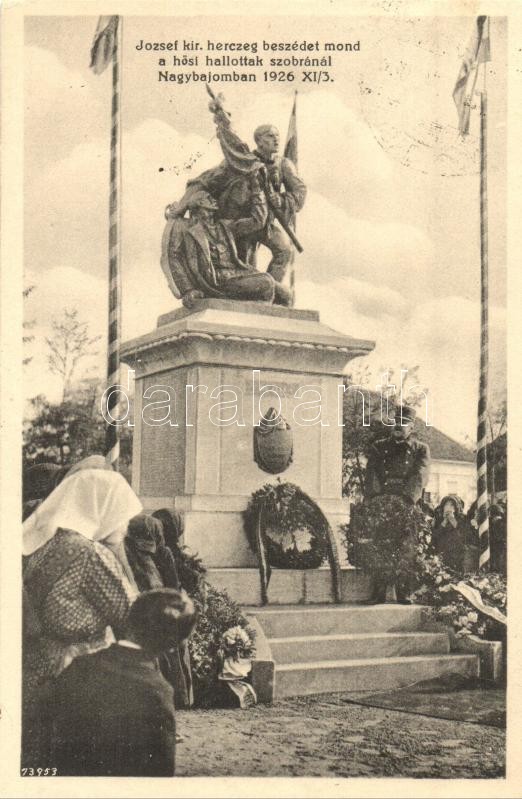 1926 Nagybajom, József kir. herceg beszédet mond a hősi halottak szobr... https://www.darabanth.com/hu/324-Gyorsarveres/324.0/Kepeslapok/Magyarorszag~2000006/1926-Nagybajom-Jozsef-kir-herceg-beszedet-mond-a-hosi-halottak-szobranal-Sellmann-kiadasa~II1803447