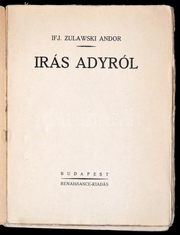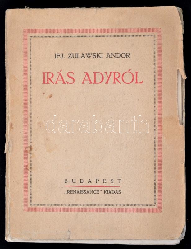ifj. Zulawski Andor: Irás Adyról Budapest, [1922?] Renaissance (Korvin... https://www.darabanth.com/hu/324-Gyorsarveres/324.0/Konyvek/Konyvek-Egyeb-ritkasagok~1000018/ifj-Zulawski-Andor-Iras-Adyrol-Budapest-1922-Renaissance-Korvin-Testverek-ny-160-p-Kiad~II1773924