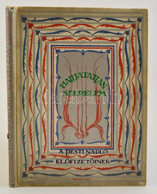Halhatatlan szerelem. Nagy költők és nagy festők művészetének tükrében. A nyolcvanéves Pesti Napló jubileumi ajándéka előfizetőinek. Bp.,1930, Pesti Napló. Rengeteg képpel illusztrált. Kiadói egészvászon-kötésben, kis kopásokkal