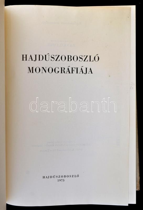 Hajdúszoboszló monográfiája. Szerk.: Dankó Imre. Hajdúszoboszló, 1975, Hajdúszoboszló Város Tanácsa , 1975, 847 p. Kiadói félvászon-kötés, kissé kopott borítóval, a hátsó szennylap és az utolsó két lap kissé foltos.