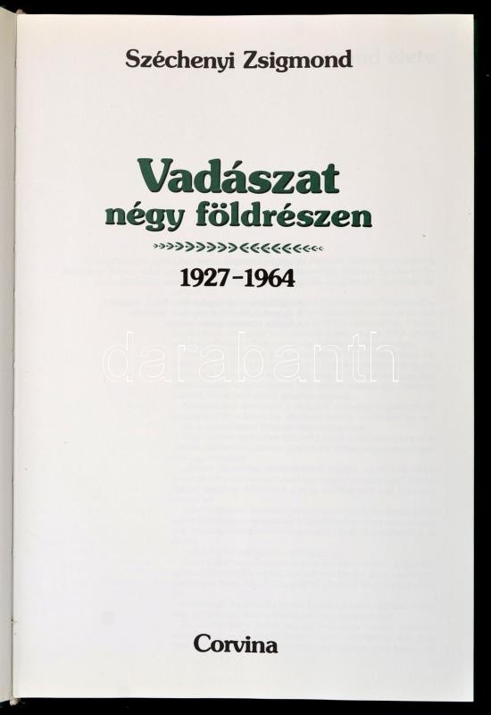 Széchényi Zsigmond: Vadászat négy földrészen. 1927-1964. Bp., 1987, Co... https://www.darabanth.com/hu/324-Gyorsarveres/324.0/Konyvek/Konyvek-Vadaszat~1000019/Szechenyi-Zsigmond-Vadaszat-negy-foldreszen-1927-1964-Bp-1987-Corvina-Kiadoi-kartonal~II1802983