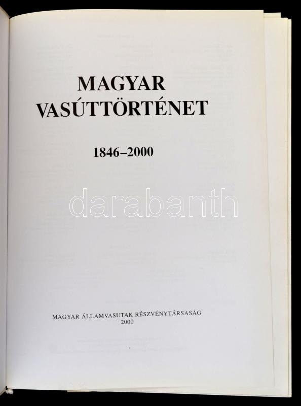 Magyar vasúttörténet. 1846-2000. Bp., 2000, MÁV. Kiadói aranyozott műb... https://www.darabanth.com/hu/324-Gyorsarveres/324.0/Konyvek/Konyvek-Vasut-temaju-konyvek~1000012/Magyar-vasuttortenet-1846-2000-Bp-2000-MAV-Kiadoi-aranyozott-mubor-kotes-serult-kC3~II1803356