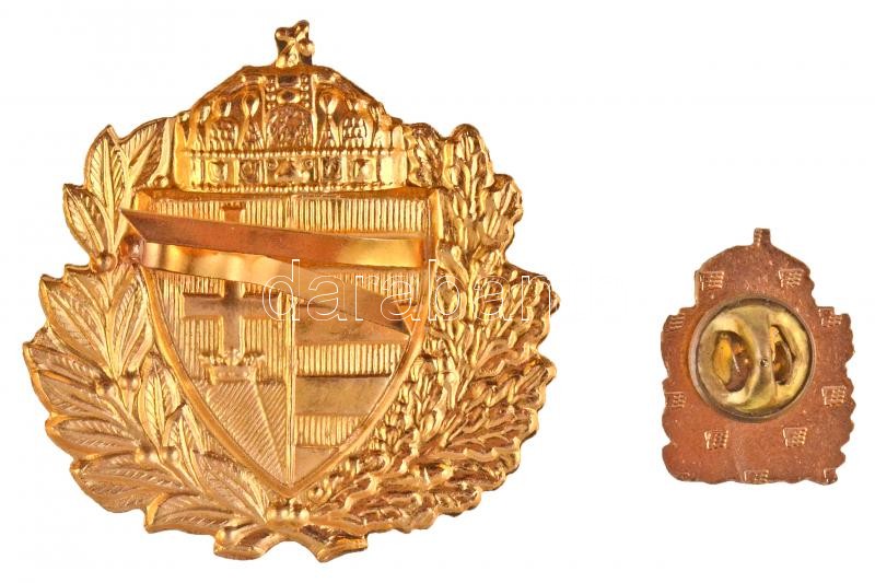 Leírás: DN Magyar címeres aranyozott sapkajelvény + Magyar címeres zománcozott kitűző T:1-