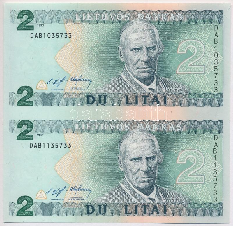 Lithuania 1993. 2 Litas un... https://www.darabanth.com/hu/324-Gyorsarveres/324.0/Numizmatika/Kulfoldi-bankjegyek~2500012/Litvania-1993-2L-vagatlan-2-es-ivben-TI--Lithuania-1993-2-Litas-uncut-sheet-of-2-CUNC~II1800346